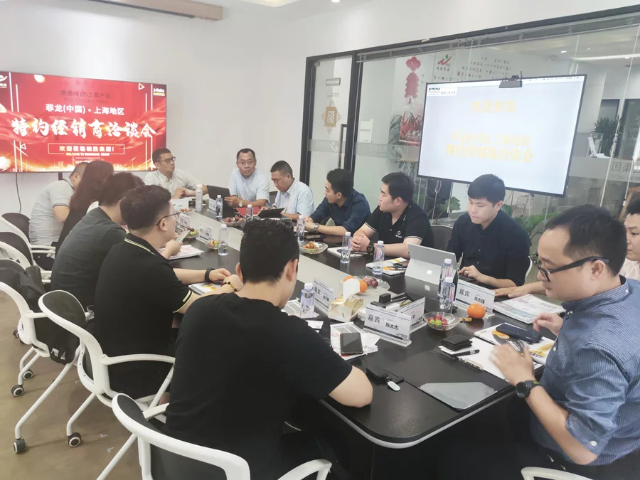 2021年8月26日,“菲龙(中国)上海地区特约经销商洽谈会”在皖胜集团上海总部隆重召开!皖胜集团董事长高小路,菲龙工具副总吴庭胜,及来自上海地区特邀企业:祺购工业、嘉靖实业、沪科商贸、靠淼实业、云谦贸易的7位经销商代表,萨斯云科技3位特邀嘉宾共同出席了此次洽谈会。